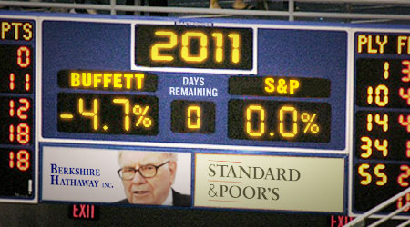 จุดที่น่าสนใจก็คือ แม้ S&P จะไม่เปลี่ยนแปลงเลยในปีนี้ แต่ก็ยังชนะ “เบิร์คไชร์ แฮธาเวย์” ของ วอร์เรน บัฟเฟตต์ โดยหุ้น Class A ของ BRK สิ้นสุดปีด้วยราคา 114,755 ดอลล่าร์ต่อหุ้น ลดลง 4.7% จากราคาปิดในปี 2010 ในขณะที่หุ้น Class B ลดลง 4.8%