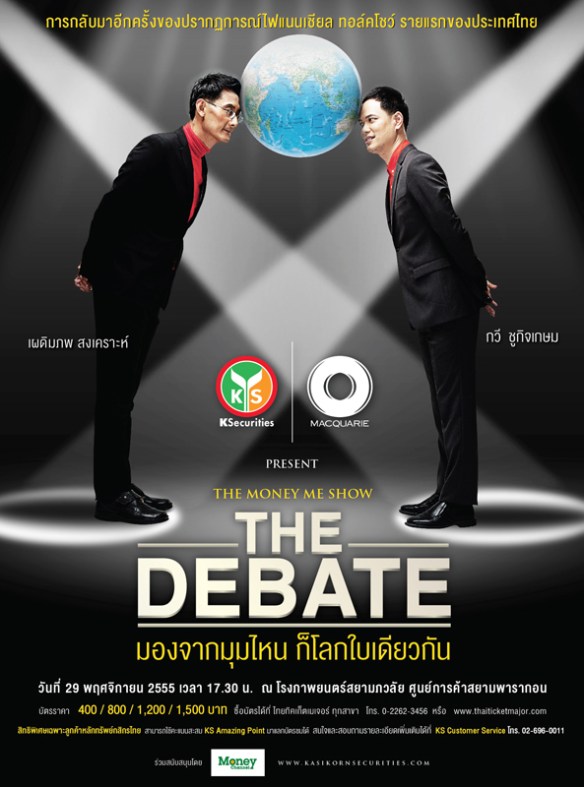 Club VI แจกบัตรชมทอล์คโชว์ “The Debate” โดย บล.กสิกรไทย ในวันพฤหัสที่ 29 พ.ย. 2555 เวลา 17.30 น. ที่โรงภาพยนตร์สยามภวลัย สยามพารากอน จำนวน 5 รางวัล รางวัลละ 2 ใบ (รวม 10 ใบ)