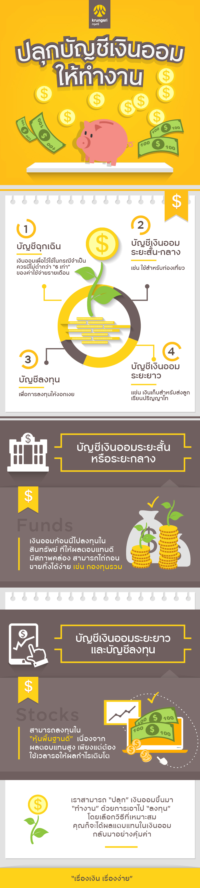 - บัญชีเงินออม : ระยะสั้นถึงระยะกลาง